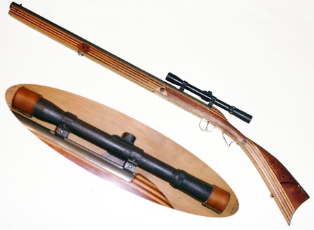 | McAirrow Chipmunk mit Schaft aus Holzresten und McAirrow Präzisionsdiopter aus der Nähe ![]() |