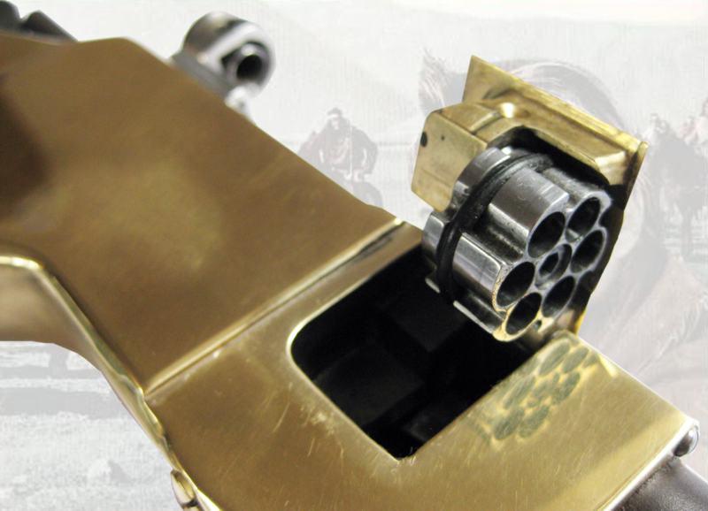 McAirrow 'oHenry's Messingbauch mit Drehpunkten für Hahn, Abzug, Hebel und Trommeltransport. Die Excenterhebelsicherung entspricht natürlich nicht dem Vorbild, gefällt mir aber besser.