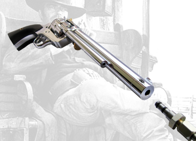 McAirrow Flycatcher Je weniger Dir existierende Lösungen bekannt sind, desto mehr kannst Du Dir die Illusion der Originalität bewahren. Ich jedenfalls kenne außer CO2-Exemplaren und den LEP-Lösungen keinen SA-Pressluftrevolver mit halbwegs originalen 'Zügen'. Wo auch das Volumen für den Tank unterbringen ? - Die Idee war nun, den Lauf als Presslufttank zu mißbrauchen und durch den Patronenausstoßer zu schießen. Was dabei herausgekommen ist, seht Ihr ja: Die Peacemaker-Skyline wurde weitestgehend beibehalten, Konstruktion und Teile ebenfalls. Tank, Trommel, Lauf und Rahmenteile habe ich aus Stahl gemacht, die Griffschalen aus Ebenholz. Der Luftweg durch Tank, Rahmen und Trommelachse und dann nach rechts bis hinter das Diabolo war allerdings ein wenig 'tricky', die Herstellung von Trommel und Rahmen ebenfalls. Weil ich am Ende wirklich zufrieden war, habe ich alle Stahlteile noch glanzverchromen lassen. Mir jedenfalls gefällt's.
