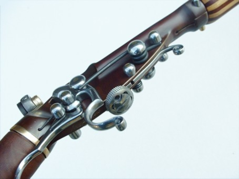 HowStuffworks - Der Schaft Eher amüsant die Tatsache, daß bereits vor Jahrhunderten auf dem lederbedeckten Kolbenreservoir eine Schäftung aus exotischem Restholz angebracht wurde, wohl um den Fortbestand unserer Regenwälder nicht zu gefährden. Die Befestigungsschellen, das Füllventil mit Abdeckschraube und die angedeutete Schaftkappe sind aus poliertem Messing. |