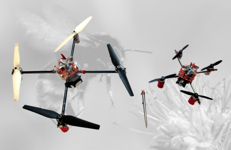 Nach einiger Übung fühlte ich mich dann doch recht sicher und schon begann ich, angesichts der kurzen Fluzeit (6 Minuten) und des doch eher behäbigen Flugverhaltens über Verbesserungen nachzudenken. Wie Ihr mich kennt, konnte ich die Finger nicht vom Schraubenzieher lassen. Der x8 wurde entkernt und in einfachster Form neu aufgebaut. Leicht sollte es werden, um die Wendigkeit zu verbessern und die Flugzeit zu erhöhen. Als Ergebnis seht Ihr die beiden Varianten auf dem Foto. (1) Platine, Motoren, Zahnräder und Rotoren aus dem Original wurden auf einem Kreuz in Originalabmessungen (240mm x 240mm) aus hochfestem Aluminiumrohr (Bogenpfeilschaft) montiert und verkabelt. Verdrillte, nachstellbare Spannschnüre außen sorgen für ein äußerst stabiles Crashverhalten. Ohne Akku wiegt das Modell nun 300 Gramm statt der 580 Gramm im Original. So kam es zu einem wirklich agilen Flugverhalten und in Verbindung mit dem größeren Akku (s. u) zu Flugzeiten von zwischen 20 und 30 Minuten ! Angesichts der äußerst günstigen Preise für die benötigten Komponenten (Platine, Motoren, Zahnräder und Rotoren) entstanden mehrere Exemplare dieser Konstruktion. Die Kanzel besteht übrigens aus dem Boden einer Wasserflasche