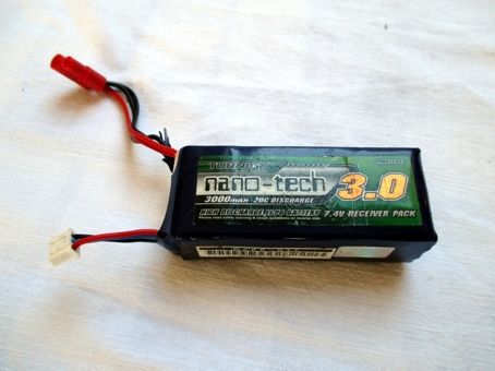 2016 - leistungsfähiger Akku Mit dem Turnigy Nano Tech 2S2P 3000 mah (ca. 150 Gramm) fliegt der Grosse (Variante 1) zwischen 20 Minuten (Vollgas) und 30 Minuten (Schweben). So macht es wirklich Spaß...