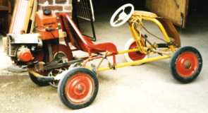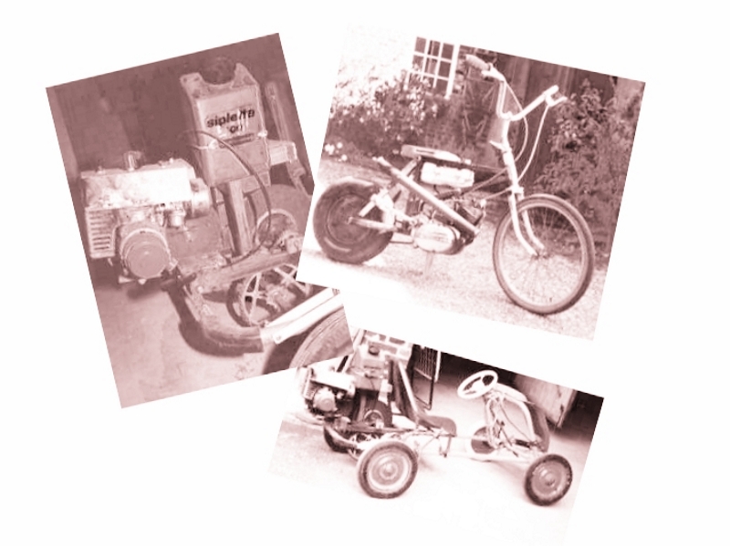 1985 ff Schon in grauer Vorzeit entstanden in "Theo's MotorenWerken" für unsere damals noch kleinen Kinder aus Fahrrädern, Schubkarren, Kettcars und Rasenmähern mehrere motorisierte Fahrzeuge, mit denen bei Geburtstagen Wettkampfrunden gedreht wurden.
