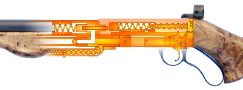 Rugby Systemskizze Ziel der Konstruktion war ein starker, unverwüstlicher Repetierer für Rundkugeln. Durch das simple Röhrenmagazin und das hier wieder verwendete Tiefladeprinzip kam es zu einer wirklich einfachen Konstruktion mit wenig Mechanik, wie Ihr unten sehen könnt. Rugby eignet sich übrigens besonders für die Jagd auf die in letzter Zeit insbesondere am linken Niederrhein wieder vermehrt auftretenden truthahngroßen Velociraptoren. Was Ihr vielleicht nicht wißt: Nach Beendigung der diesbezüglichen Filmarbeiten kam es auf Betreiben radikaler Tierschützer gerade in NRW zu Auswilderungsprojekten ausgerechnet mit diesen unberechenbaren Zeitgenossen. ![]()