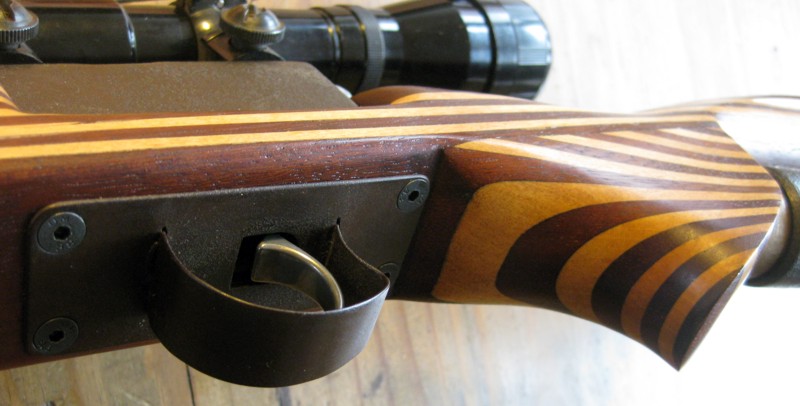 Rusty Systemskizze Ziel der Konstruktion war ein möglichst leichtes, kompaktes und handliches Taubengewehr. Wie Ihr seht, habe ich den kurzen Lothar Walther Lauf, auf dem auch das Schlagstück läuft, zur Beruhigung in einen dünnwandigen, bräunierten Blechmantel gelegt. Systemkasten mit bronziertem Kipphebelabzug und Reservoir sind aus rostepoxiertem Aluminium und tragen so zum geringen Gewicht von unter 2 KG bei. Der tropische Schichtholzschaft beschränkt sich auf das Wesentliche und unterstreicht im Ton die übrigen Rostoberflächen. Rost, Rust, Rusty, so kam McAirrow Rusty zustande, die eigentlich McAirrow Bantam heißen sollte. ![]()